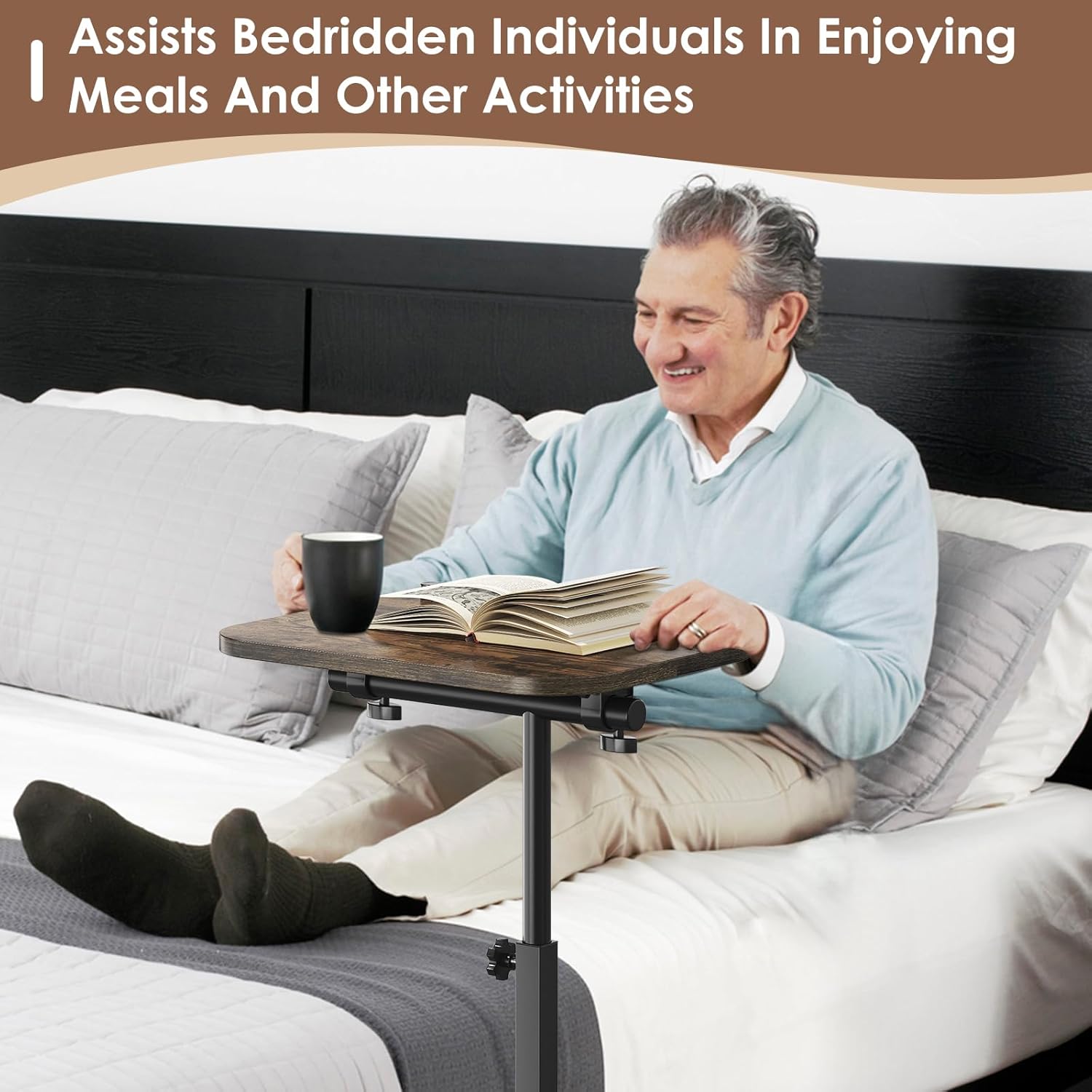 - Full 360° Rotation and Multi-Angle Tilt: Unlock ultimate flexibility with this sofa table tray's 360° rotating and tiltable tabletop, designed for seamless adjustments during reading, working, or binge-watching. Tailored for modern lifestyles, it positions your meals or devices at the perfect angle, making it an essential couch arm table for cozy, hands-free enjoyment