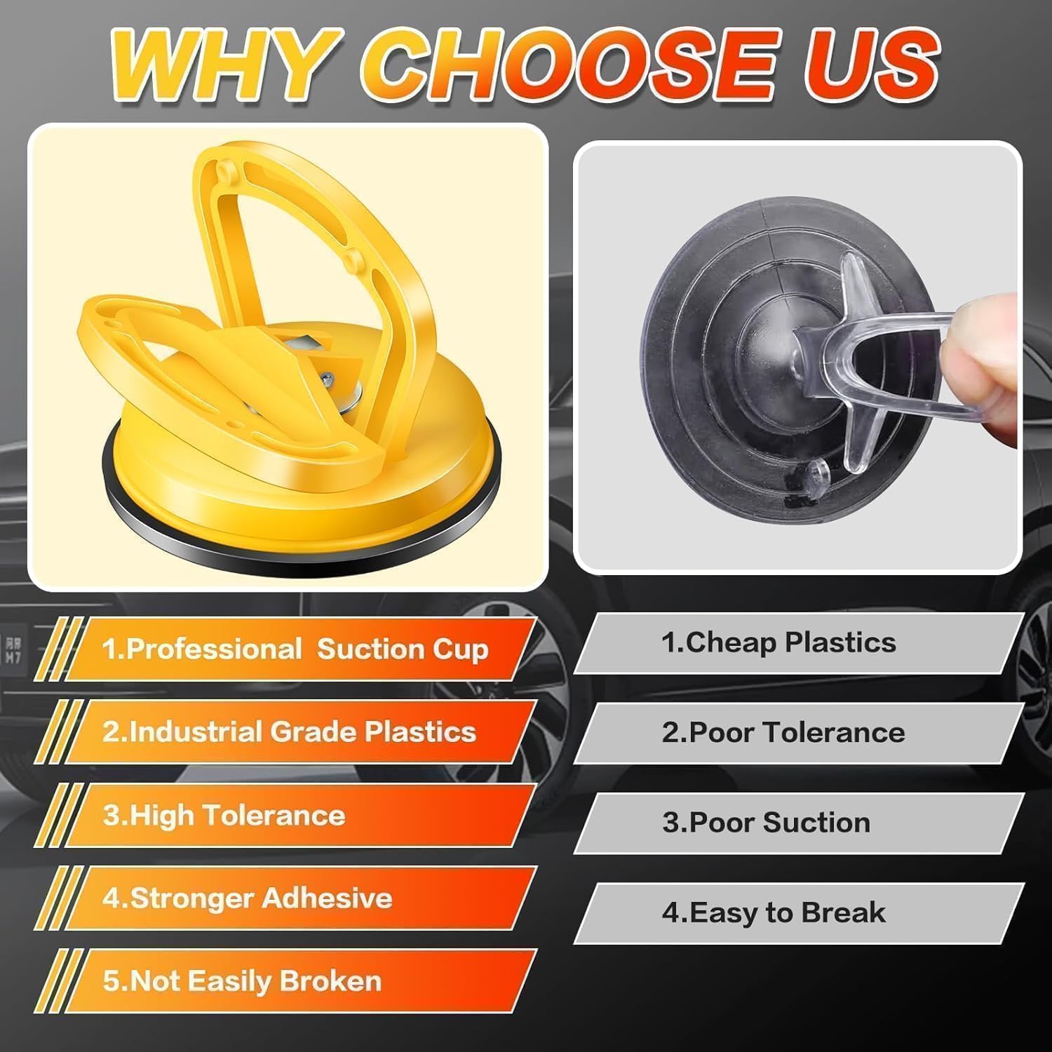 - MULTI-PURPOSE DENT PULLERS:The suction cup is a great car dent removal tool. In addition, this suction cup dent puller is good at moving furniture, glass, tile, and other smooth objects etc. And it can be used as the door/window handle, cell phone holder, and so on.